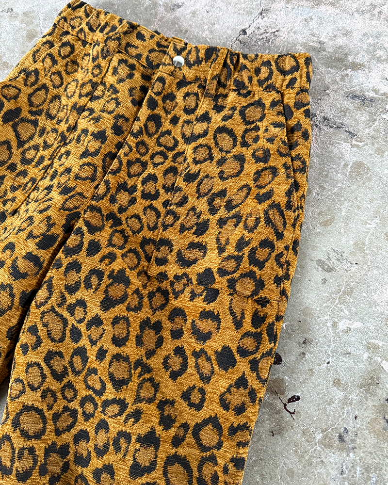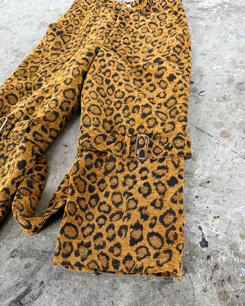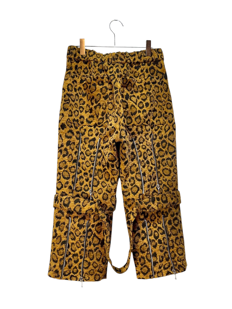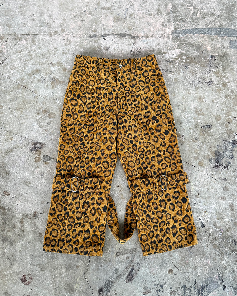 ゴブラン織による上品な陰影のあるレオパード柄を使用したボンテージパンツ。