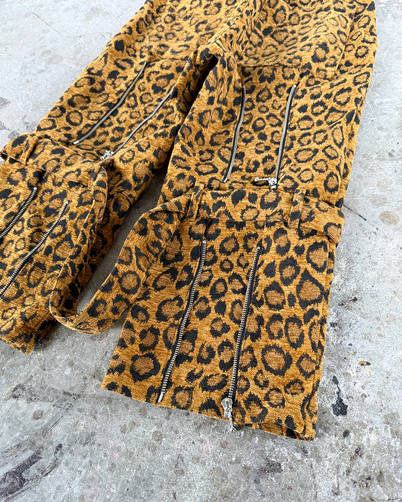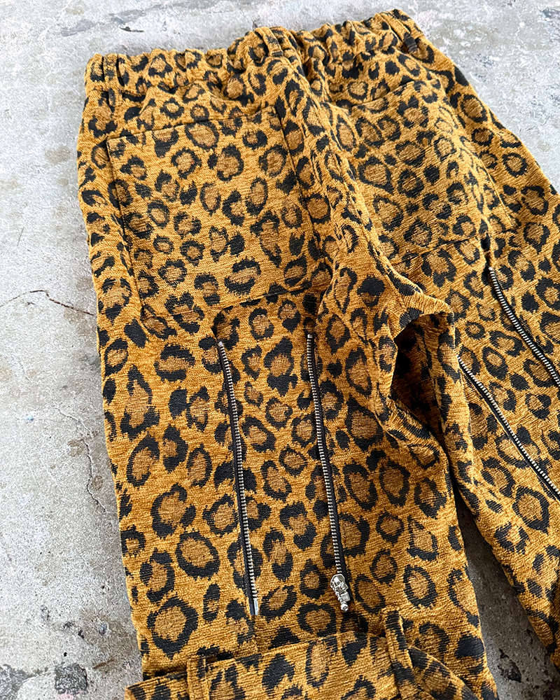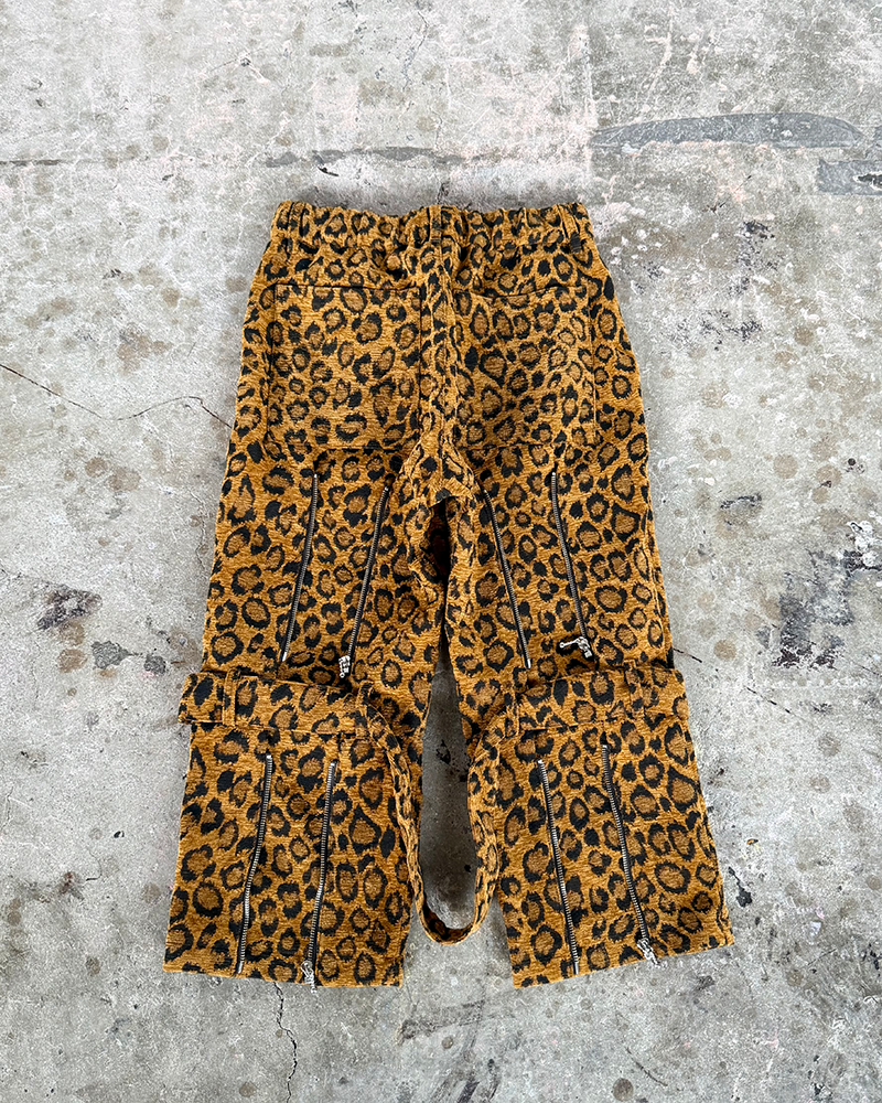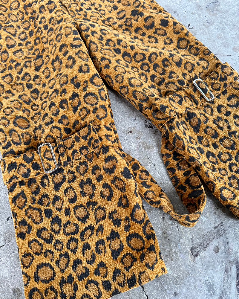 ゴブラン織による上品な陰影のあるレオパード柄を使用したボンテージパンツ。