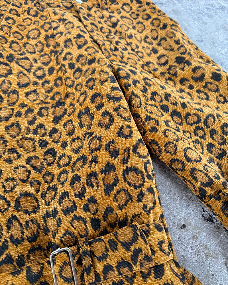 高級素材である柔らかなモール糸で織られた、しっかりとした生地感のレオパード柄ゴブラン生地を使用した一着です。