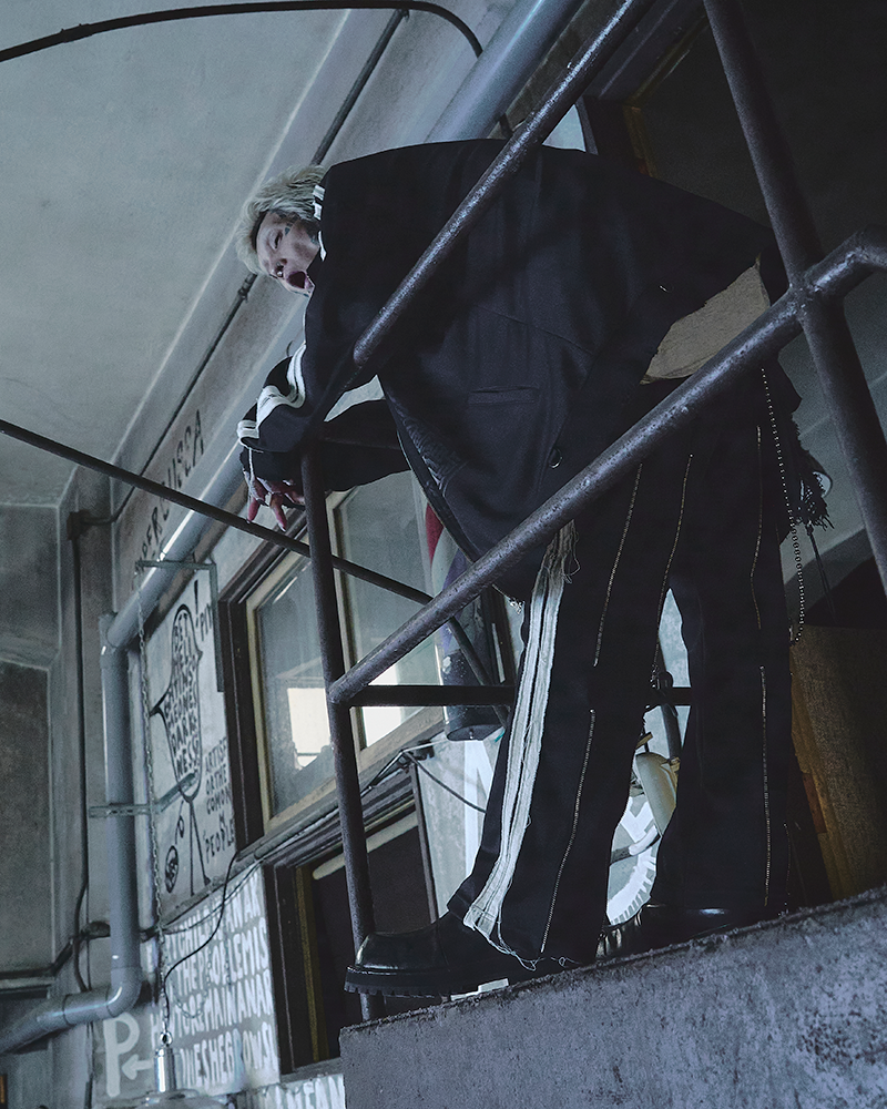トラックジャケットととしてのアイデンティティを残しながらも、dena:manaの世界観を落とし込んだ退廃的なイメージの一着に仕上げました。