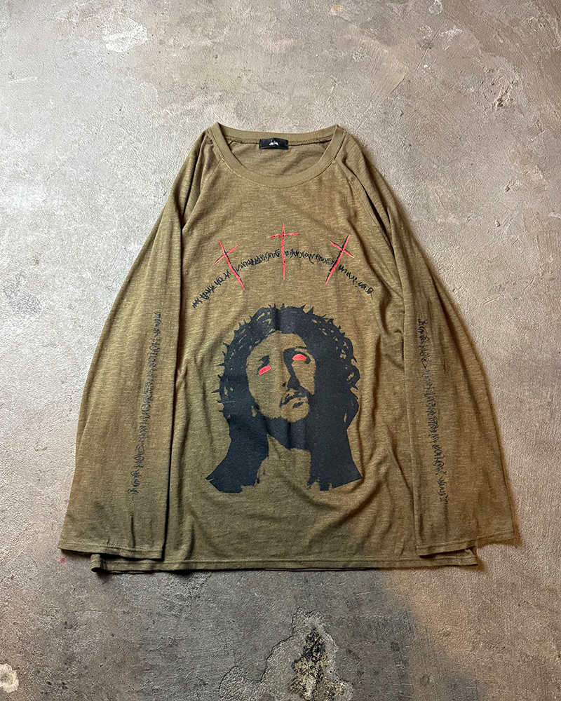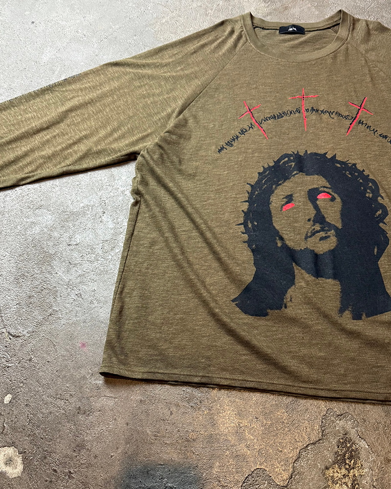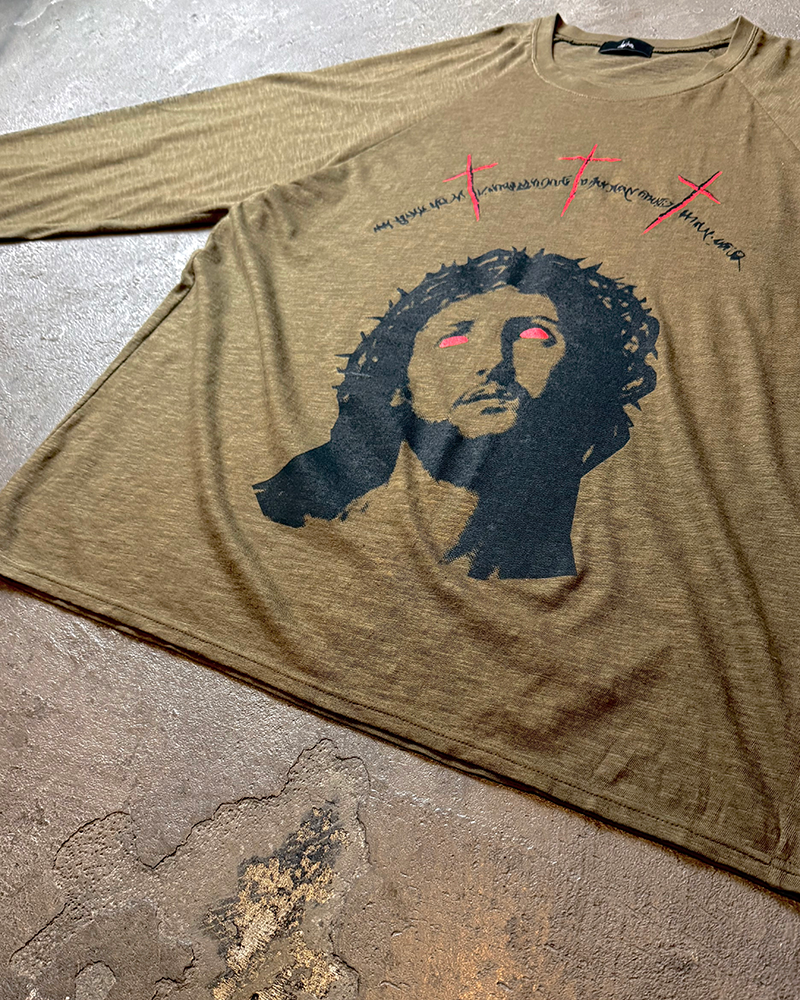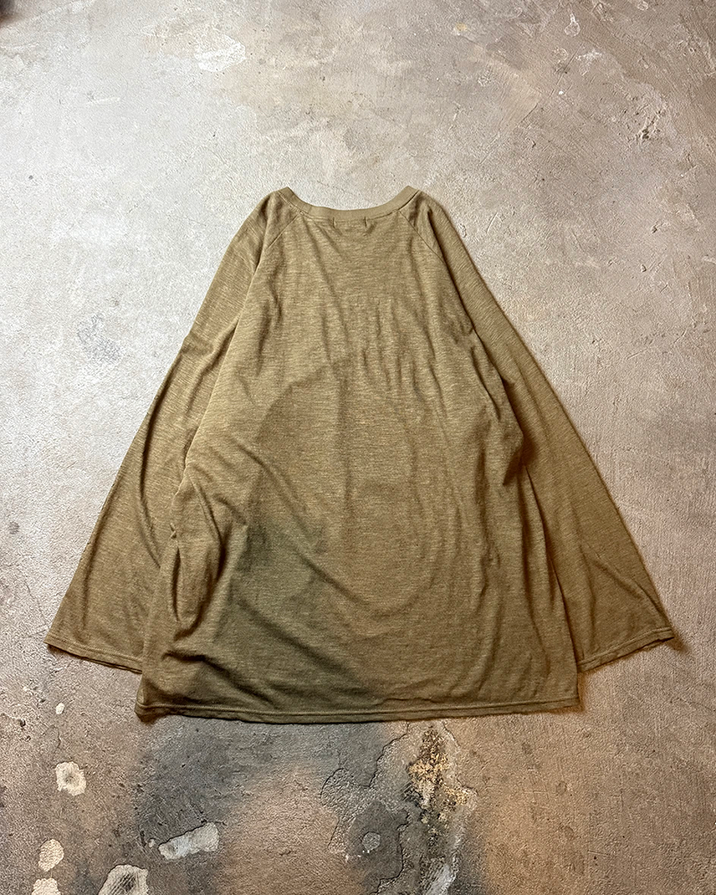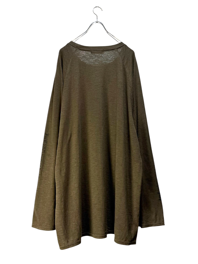 ブランドのオリジナルで製作したボディによるオーバーシルエットのラグランロングスリーブTシャツ。