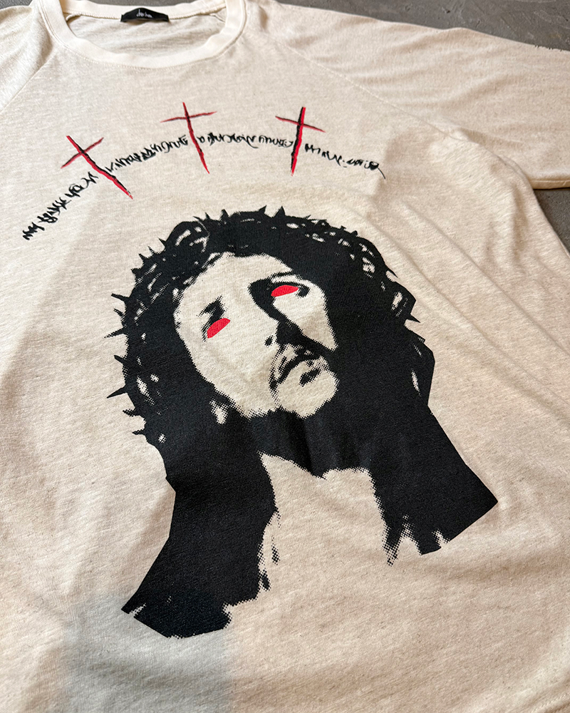 両袖にもプリントを施し、こちらは手刷りによってあえて掠れが出るようにプリントしております。