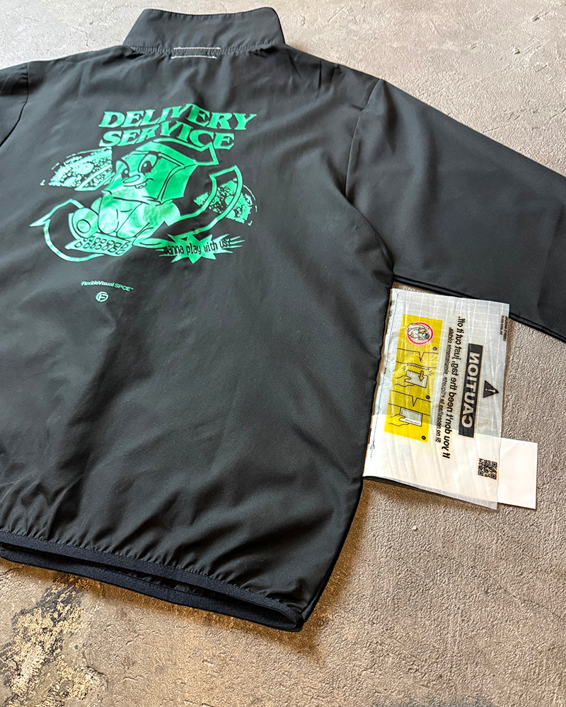 デザイナーJohn June Jamesによってデザインされたグラフィックを配したナイロンジャケット。