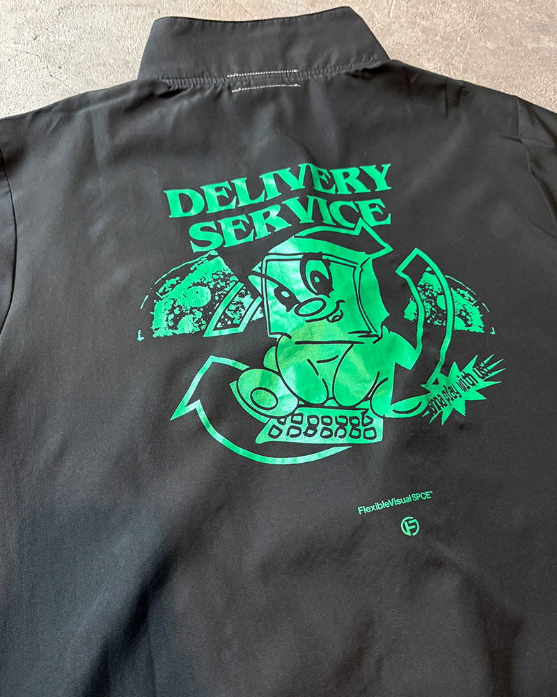 "delivery PIZZA"と題されたグラフィックを背面に大きくデザイン。